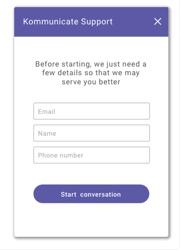 For collecting users' contact information before initiating the chat, use the preLeadCollection method. Once configured, users will see the form on click of the chat widget launcher icon.