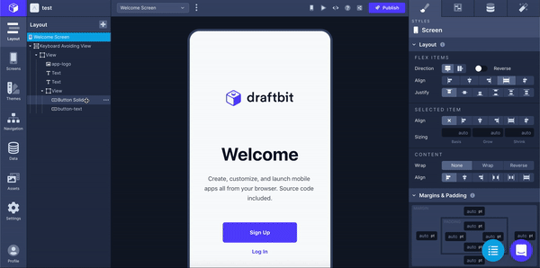 In the dropdown, select a screen in the current navigator or a different navigator to navigate to. (Stack Navigator only: Aside from screens and navigators, a Go back option is in the dropdown which takes you to the previous screen in the stack.)