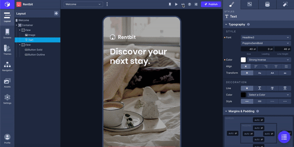 Once you've built your app, it's time to export your project out of Draftbit and onto your own machine. Click "View Code" at the top of the screen and then click "Export Project".