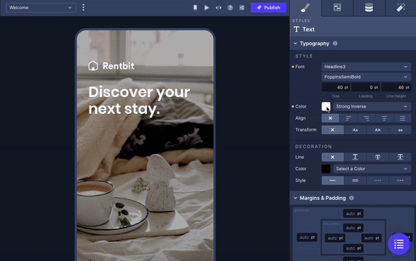 In this tab, you are able to set the typography to be used throughout your project.